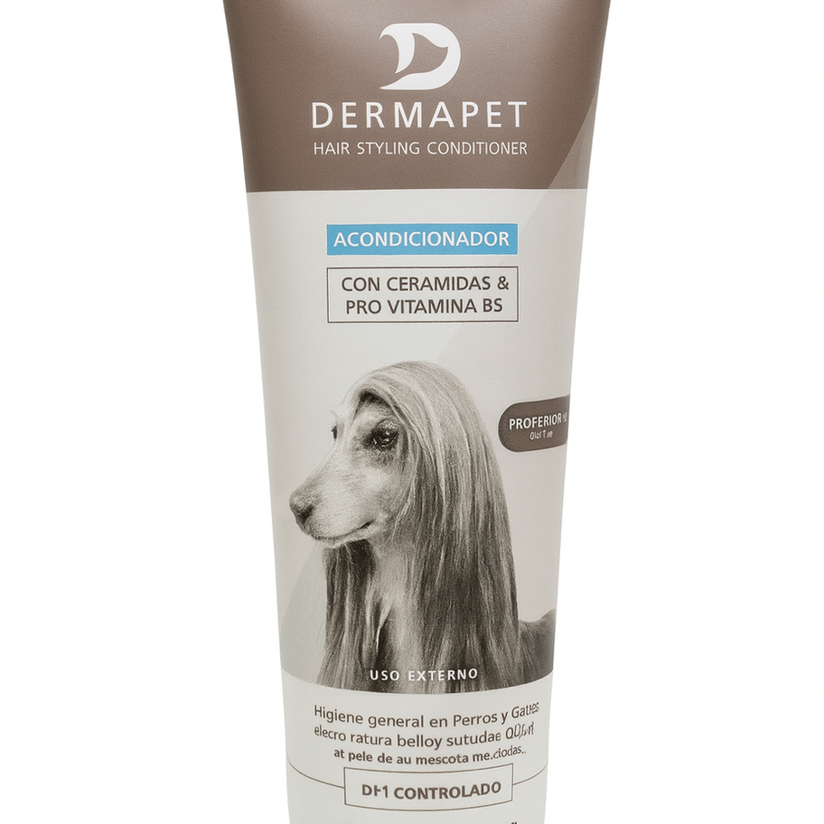 El Acondicionador Dermapet Hair Styling está diseñado para restaurar, hidratar y devolver la suavidad al pelaje de perros y gatos, especialmente aquellos con pelo largo o seco.